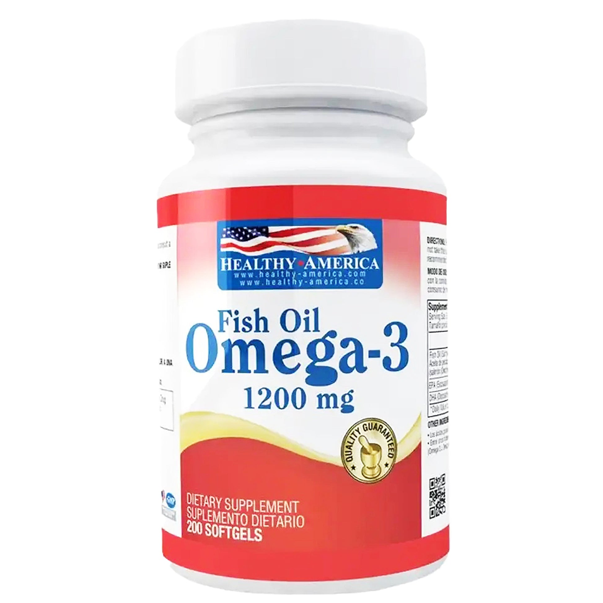 Fish Omega 3 de Healthy America es un suplemento nutricional formulado para proporcionar los beneficios del ácido graso esencial omega-3 derivado de aceite de pescado. Cada cápsula contiene 1.200 mg de omega-3, incluyendo ácido eicosapentaenoico (EPA) y ácido docosahexaenoico (DHA), que son fundamentales para la salud cardiovascular, cerebral y ocular.
