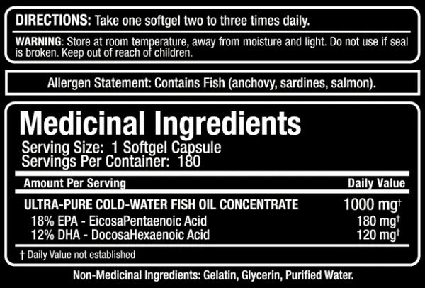 ALLMAX Nutrition Omega 3, concentrado de aceite de pescado de agua fría ultra puro, 180 cápsulas blandas