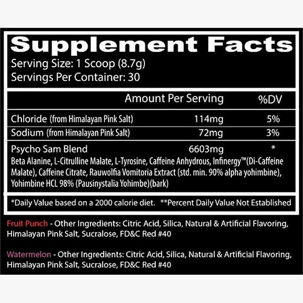 Prepárate para desatar tu locura en el gimnasio. Psycho Sam está diseñado para quienes buscan energía extrema, enfoque total y resistencia sin límites. Su fórmula combina ingredientes clínicamente probados para maximizar tu rendimiento físico y mental:
